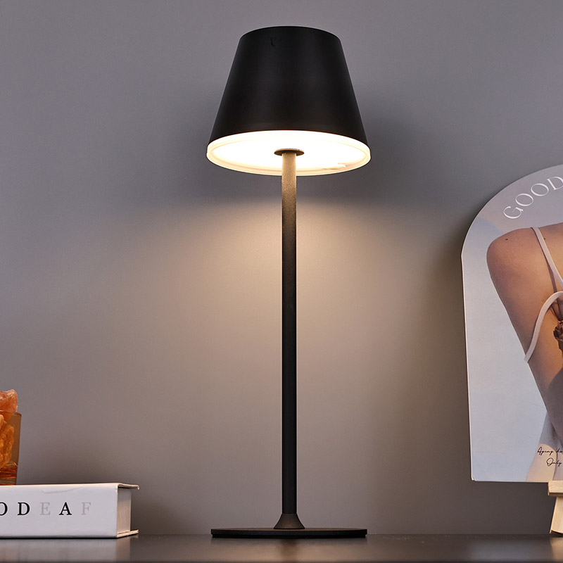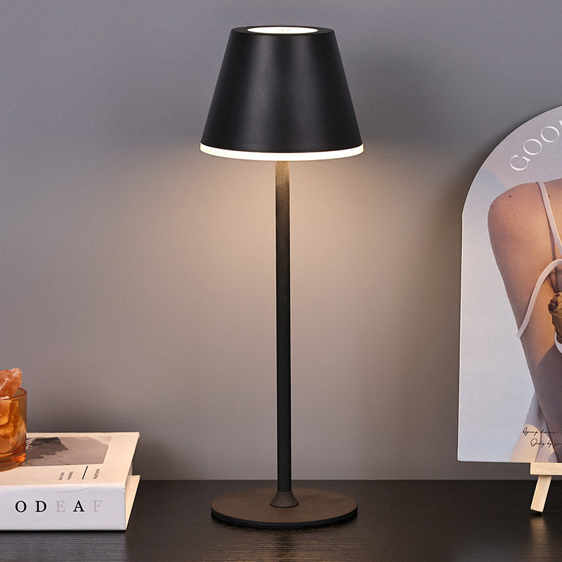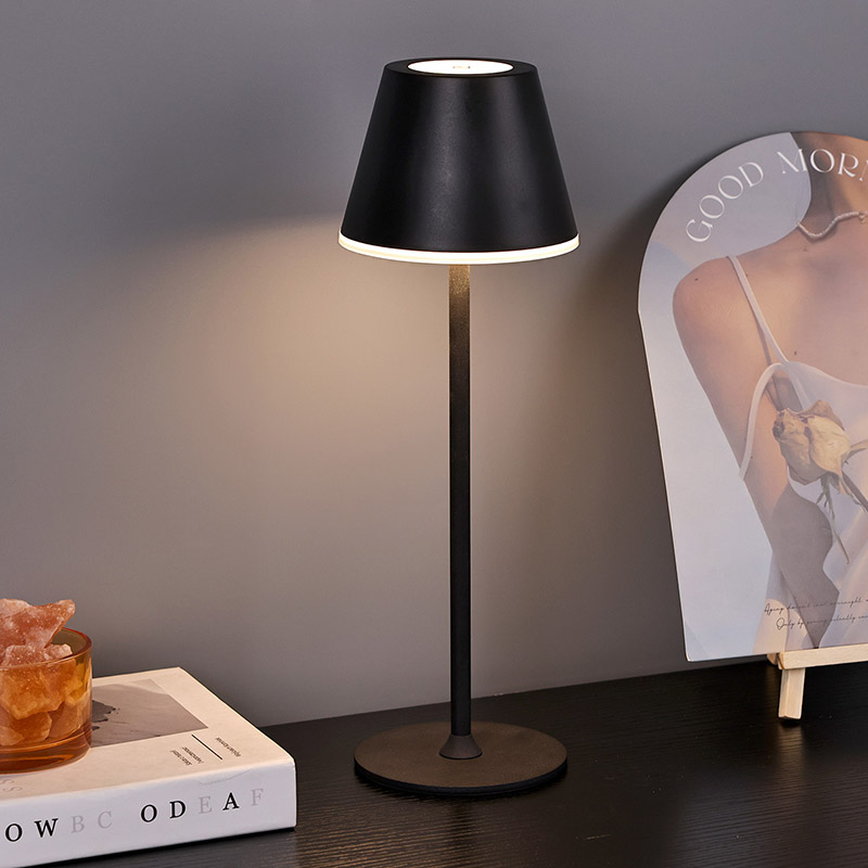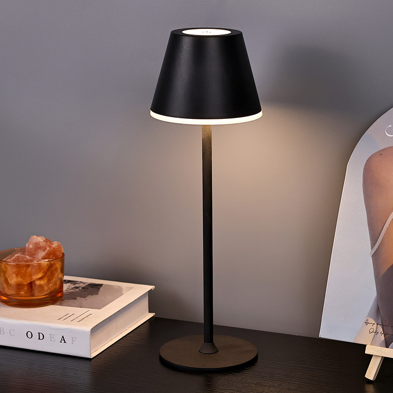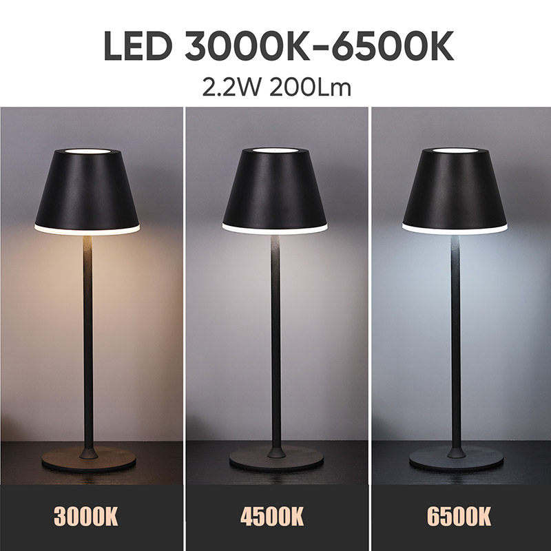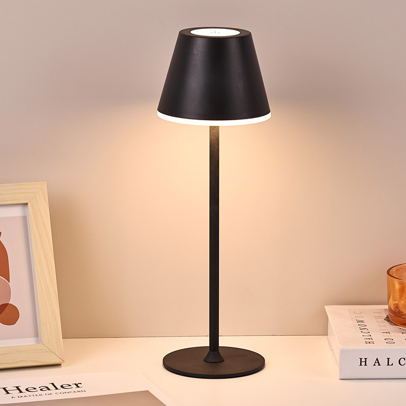 De montage van een draadloze led-tafellamp is een aanraakknop bovenaan het midden van de kap. Kan de lichtschakelaar en de conversie van drie lichtkleuren bedienen, net als op de afbeelding hieronder
