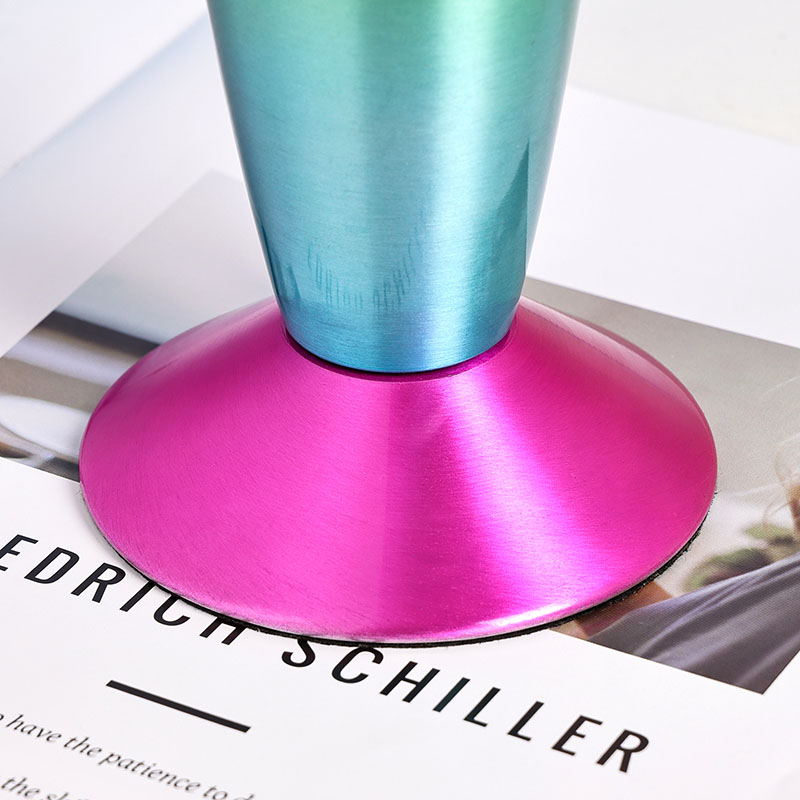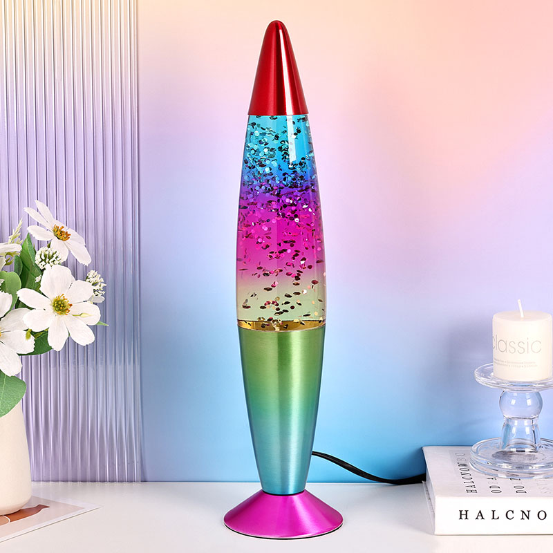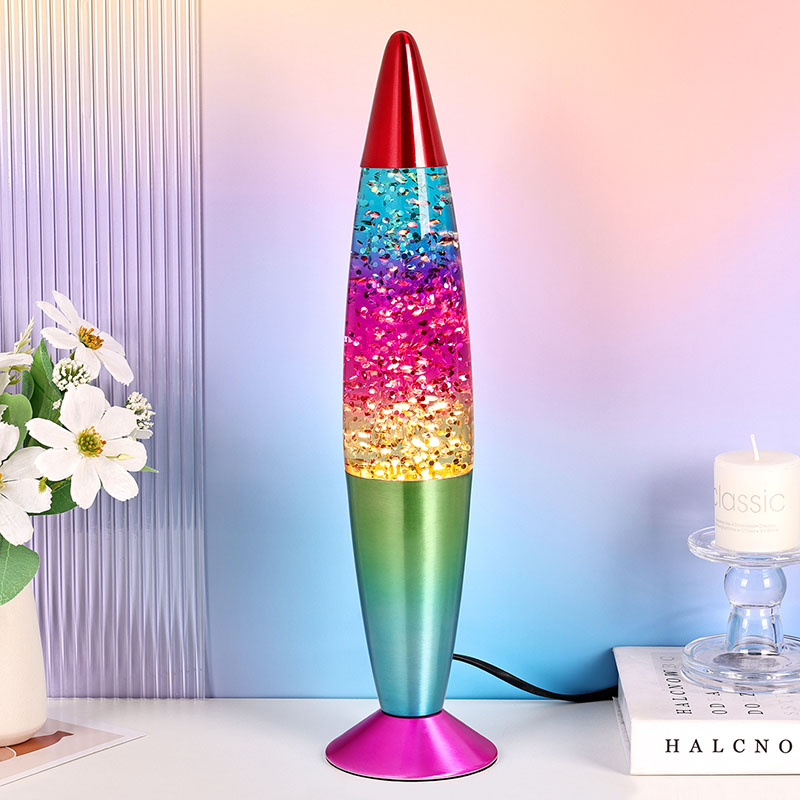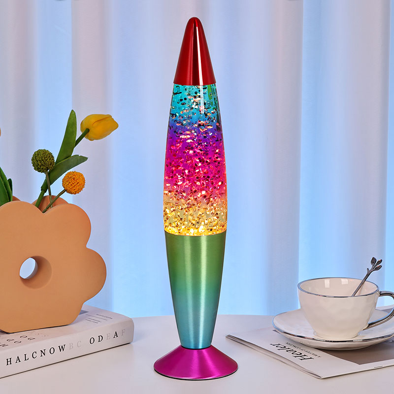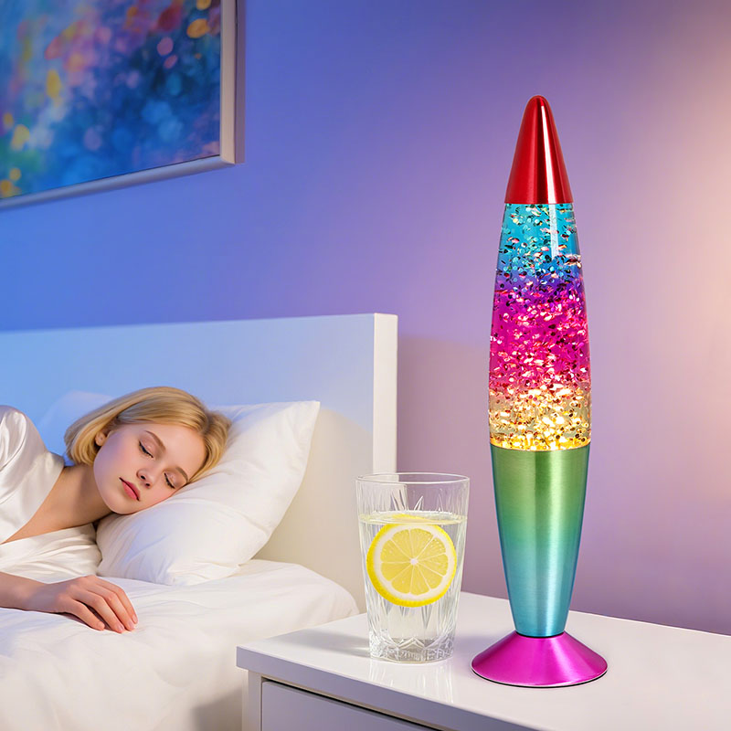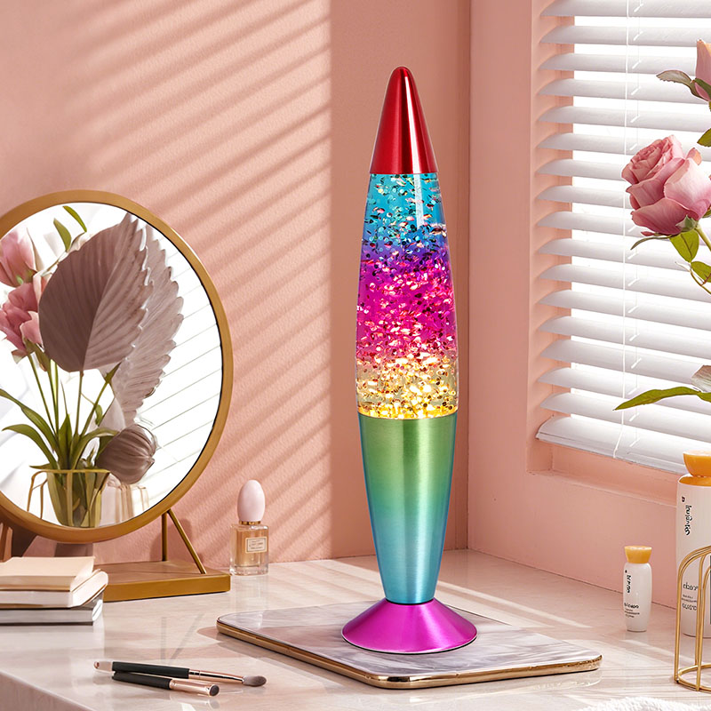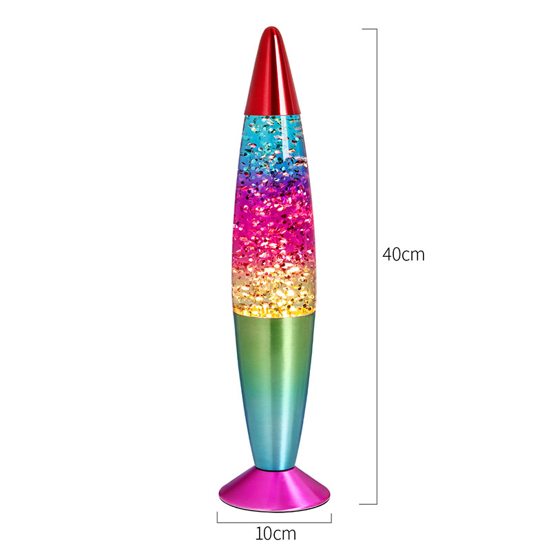 Bullet-color glitter RGB-licht heeft een uniek kogelvormig ontwerp, met een vloeiende en dynamische algehele vorm, zoals een droomraket die op het punt staat gelanceerd te worden. De metalen behuizing is fijn gepolijst en behandeld, met een glad en delicaat oppervlak en een comfortabel handgevoel, wat een nobele en elegante sfeer weerspiegelt. Lampen kunnen meerdere kleuren licht uitstralen, waardoor de hele vloeistof rijke kleurveranderingen vertoont