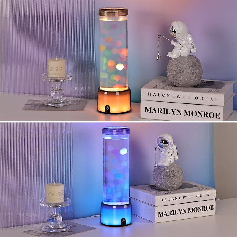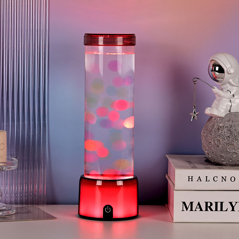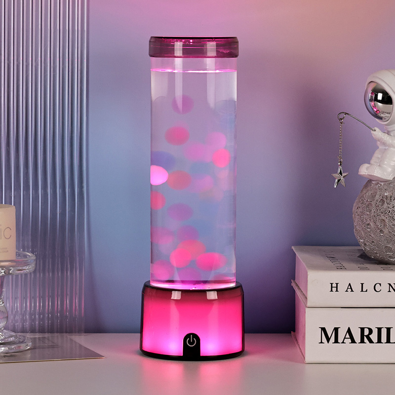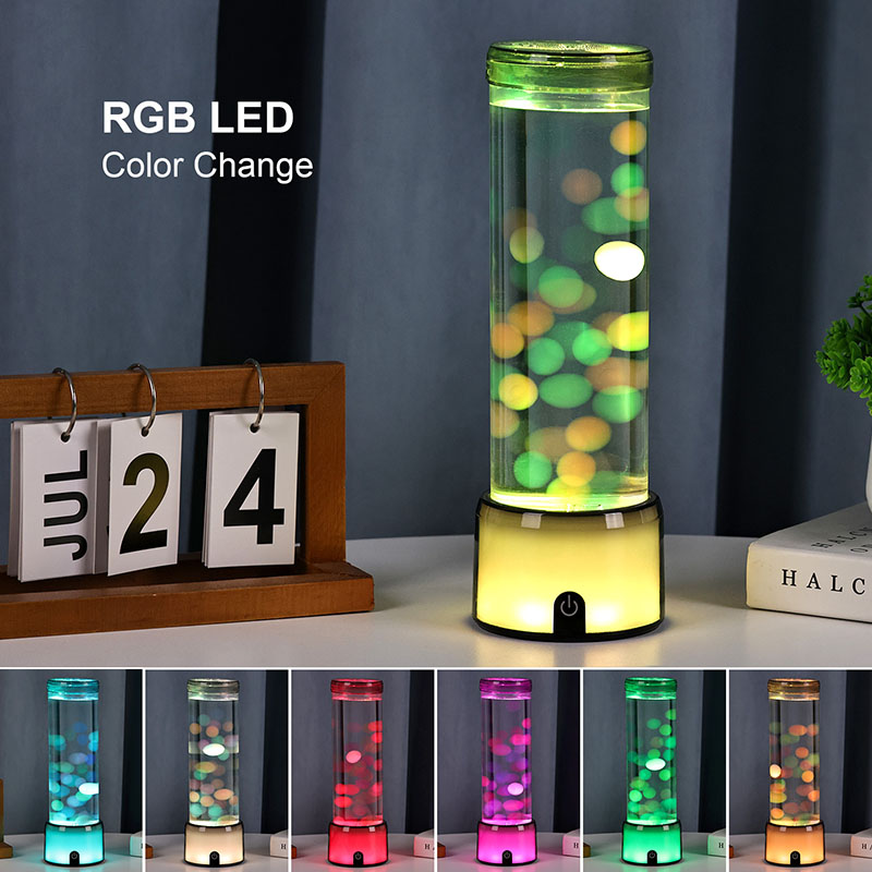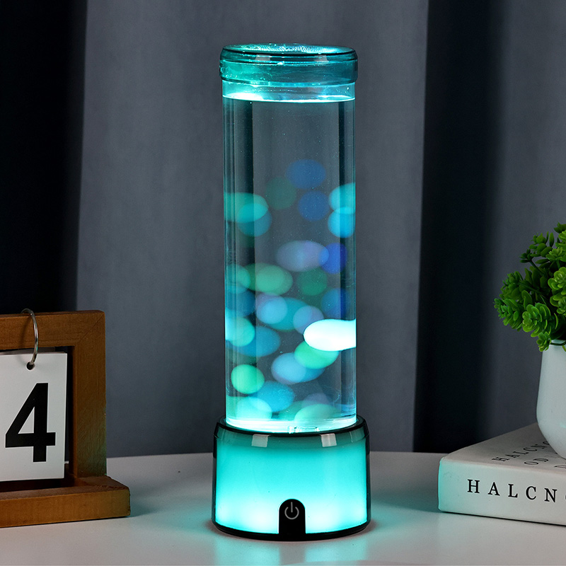 Productomschrijving: Cilinder gesimuleerde aquariumlamp met kleurveranderende LED en gloeiende kwallen - Hoog, DC-aangedreven, knopgestuurd decoratief licht