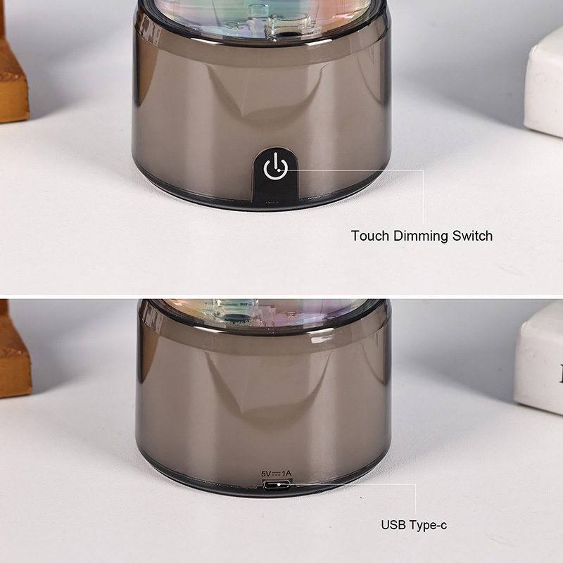 De voet van de lamp is gemaakt van hoogwaardig, duurzaam kunststof met een strakke afwerking die past bij het algehele ontwerp. Het zorgt voor een uitstekende stabiliteit, waardoor de lamp ook op oneffen oppervlakken rechtop blijft staan. Het bovenste deksel is veilig afgedicht om lekken te voorkomen, waardoor het veilig en gemakkelijk te onderhouden is.