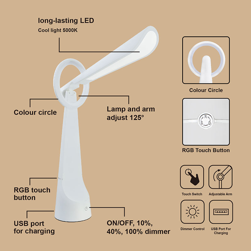 Decor rgb led-bureaulamplicht kan 3 dimmer terug op de productbehuizing. De led-lichtkop kan maximaal 125 ° worden geopend.