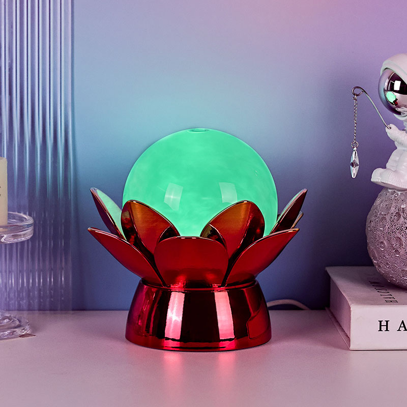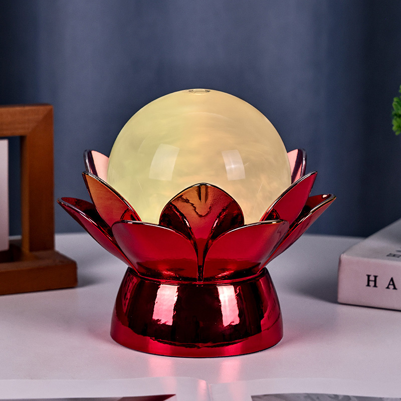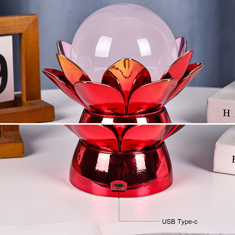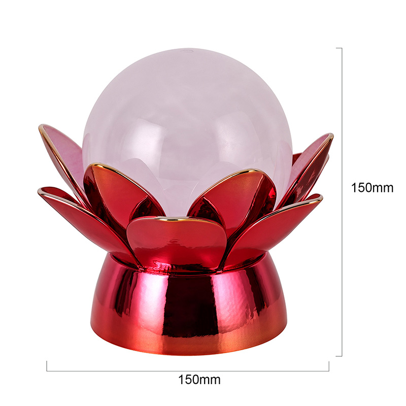 De basis is gemaakt van hoogwaardige materialen en is gemaakt van gepolijst metaal met een opvallende rood-gouden afwerking die het licht prachtig reflecteert, waardoor diepte en rijkdom aan het uiterlijk wordt toegevoegd. Het lotusontwerp dient niet alleen als een esthetisch middelpunt, maar heeft ook een symbolische betekenis die geworteld is in oosterse tradities en staat voor verlichting, veerkracht en harmonie. Het reflecterende oppervlak verbetert de visuele impact, waardoor de lamp zelfs in omgevingen met weinig licht schijnt.