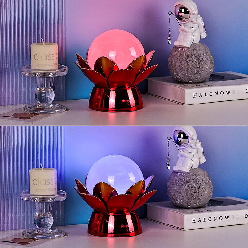Binnenin de wereldbol biedt geavanceerde LED-verlichting meerkleurige verlichting, waardoor gebruikers de sfeer kunnen aanpassen met zachte tinten zoals warm wit, zacht roze, rustgevend blauw en goudgeel. De kleurwisselfunctie kan handmatig worden bediend of automatisch worden ingesteld, waardoor een dynamische en boeiende weergave ontstaat die in de loop van de tijd evolueert. Deze sfeerverlichting is ideaal voor slaapkamers, woonkamers, yogaruimtes of als een attent cadeau voor dierbaren die schoonheid en rust waarderen.