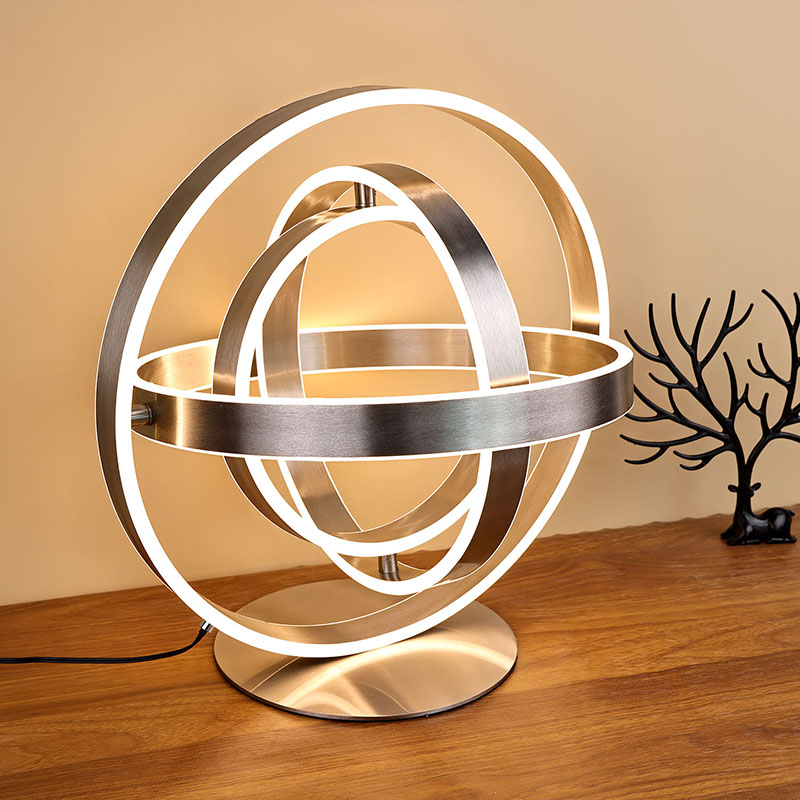 De Multi-Ring LED Decoratieve Tafellamp is met precisie vervaardigd en heeft een strak en elegant ontwerp gemaakt van duurzame legeringsmaterialen. De lamp is samengesteld uit meerdere in elkaar grijpende ringen die een visueel opvallend en uniek uiterlijk creëren. Of u hem nu op uw bureau, nachtkastje of een ander oppervlak plaatst, deze lamp zal zeker boeien en verrukken.