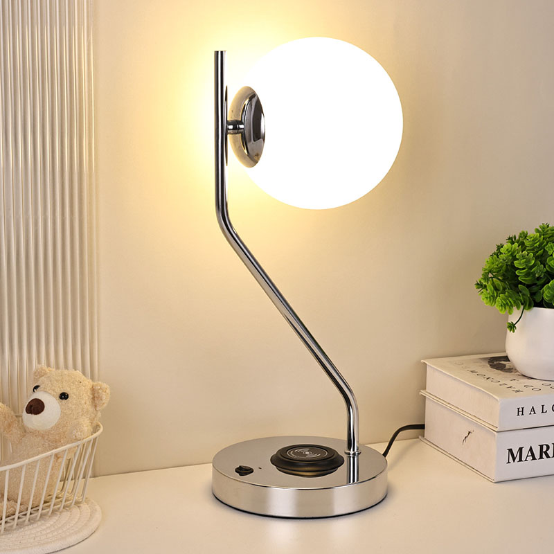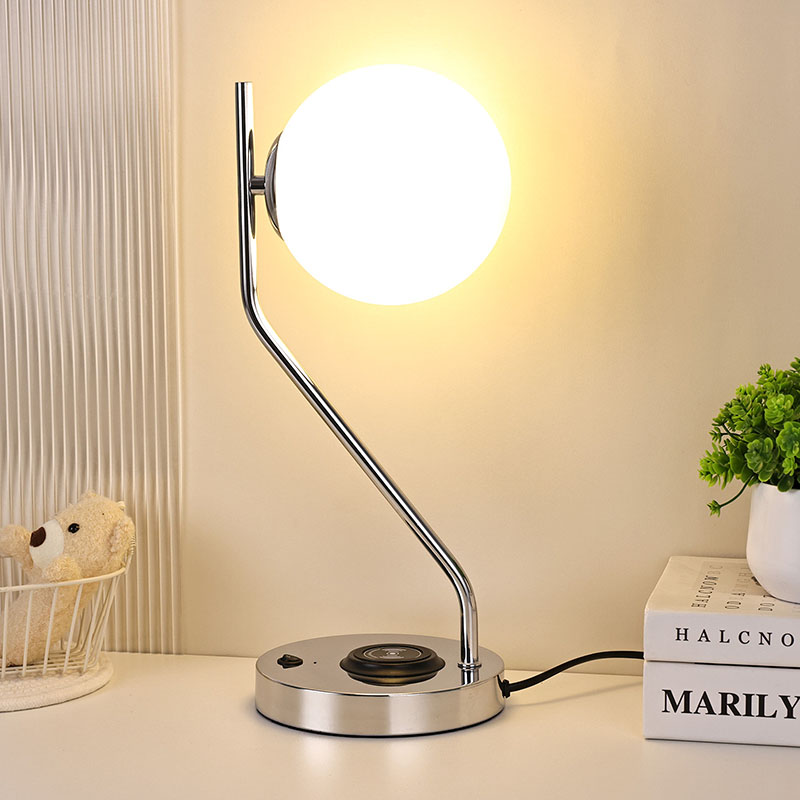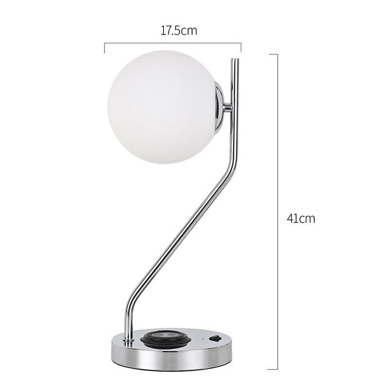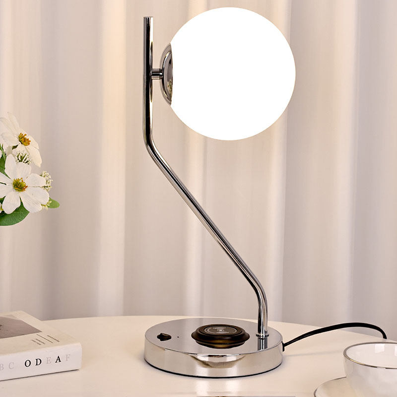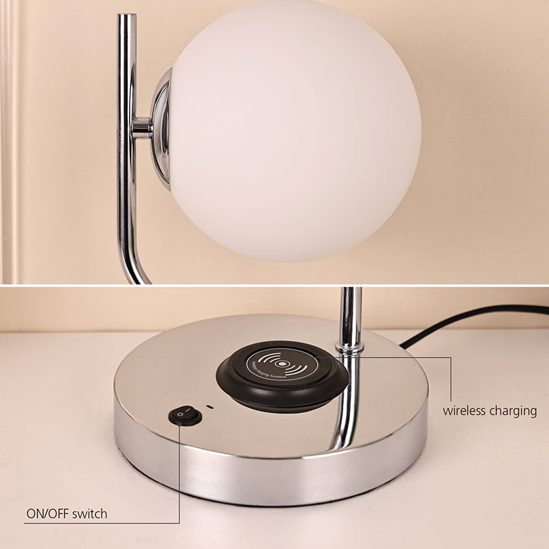 Bureaulamp met glazen kap en draadloze oplader is ook uitgerust met een metalen draadloos oplaadstation voor mobiele telefoons. Plaats de telefoon met draadloos opladen eenvoudigweg voorzichtig op het basisstation om snel op te laden, zonder dat u zich daar zorgen over hoeft te maken