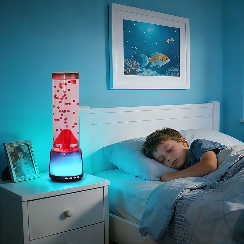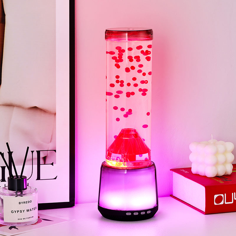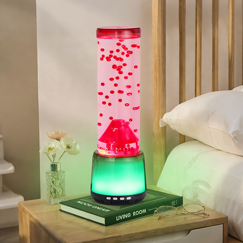 dynamiek, waarbij roodgekleurde bellen voortdurend stijgen en dalen, waardoor de natuurlijke stroom van gesmolten lava of de zachte drift van kwallen door oceaanstromingen wordt nagebootst. Dit hypnotiserende effect zorgt voor een kalmerende werking