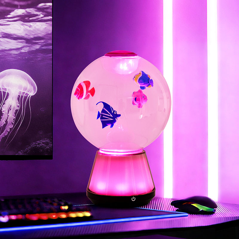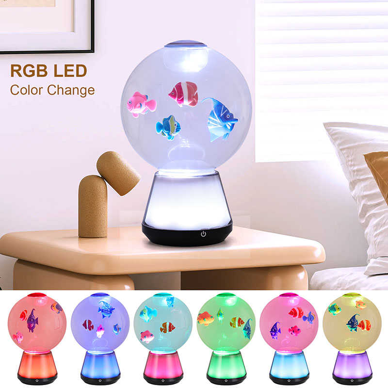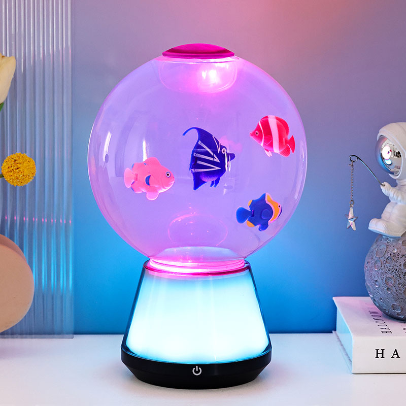 Wat deze lamp echt onderscheidt, is de semi-transparante, van kleur veranderende voet. De basis is gemaakt van hoogwaardig plastic met een matte afwerking en herbergt een krachtig maar energiezuinig LED-systeem dat door een spectrum van levendige tinten loopt, waaronder oceaanblauw, dieppaars, koraalroze, aquagroen en zacht wit. Het licht diffundeert naar boven door de tank en werpt een etherische gloed af die weerkaatst op de bewegende figuren en vloeistoffen, waardoor steeds wisselende patronen van licht en schaduw ontstaan. Het semi-doorschijnende ontwerp zorgt ervoor dat de kleuren zachtjes naar buiten stralen, waardoor de hele lamp verandert in een 360 graden omgevingslichtbron die de sfeer van uw kamer transformeert.