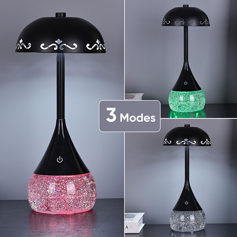 In de basis bevat een heldere fles een vloeistof die onregelmatig beweegt, waardoor een boeiend visueel effect ontstaat. Vloeibare basis LED -bureaulamp met bloemparapluvorm is geen gewone vloeistof; Het is speciaal geformuleerd om een betoverende dans van Shimmer en Swirl te creëren. Terwijl de vloeistof beweegt, reflecteert het licht in een steeds veranderend patroon, waardoor een steeds evoluerende visuele ervaring ontstaat.