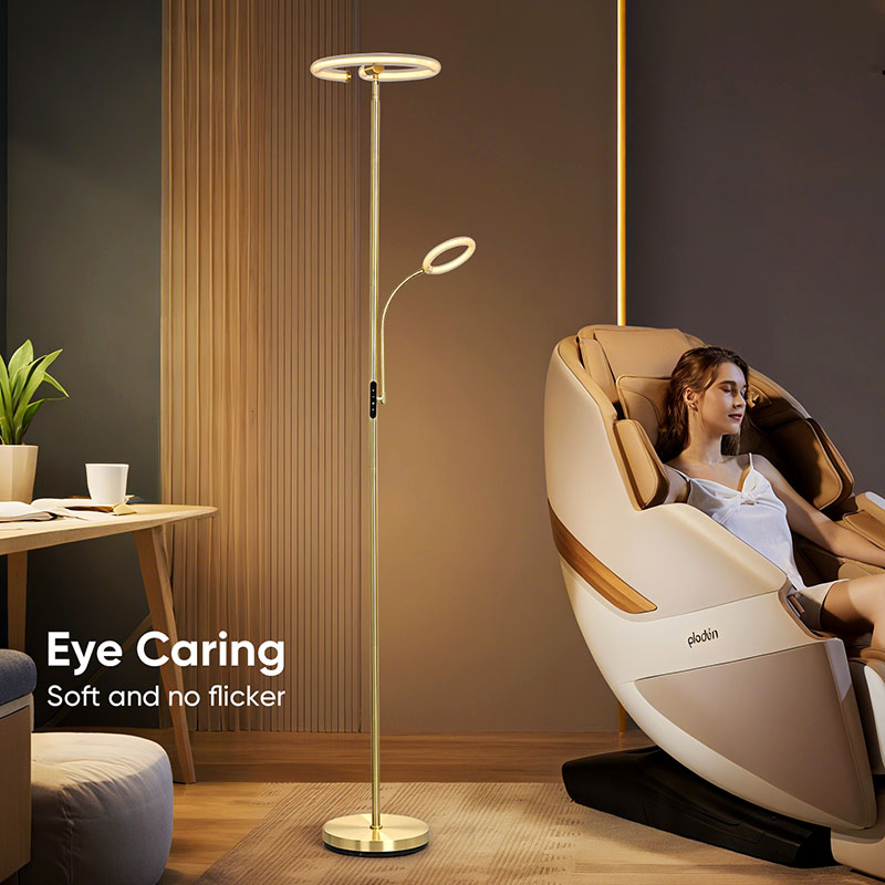 Luxe Gold led-vloerlamp voor de woonkamer is uitgerust met geavanceerde siliconenbuis 360 graden verlichtingstechnologie, die zacht en uniform licht uitstraalt en de hele ruimte effectief verlicht. Siliconenbuizen hebben een goede flexibiliteit en duurzaamheid en zijn bestand tegen verschillende omgevingsomstandigheden om de stabiliteit en veiligheid te garanderen