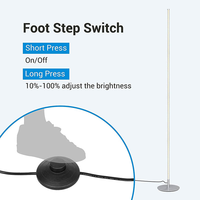 Onze LED-vloerlamp is ontworpen met het oog op gemak en is voorzien van een voetschakelaar voor eenvoudige bediening. Druk eenvoudig op de schakelaar om de lamp aan of uit te zetten, waardoor het een fluitje van een cent is om de verlichting te bedienen zonder te hoeven zoeken naar knoppen of schakelaars. Dit doordachte ontwerpdetail verbetert de algehele gebruikerservaring en zorgt ervoor dat de bediening van de lamp zo eenvoudig en intuïtief mogelijk is.