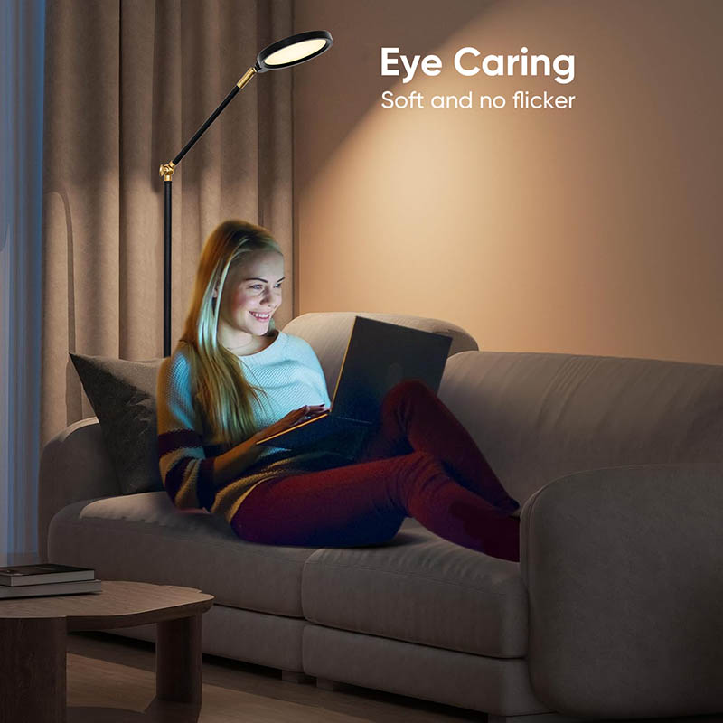 Deze vloerlamp biedt niet alleen instelbaarheid - het biedt drie verschillende verlichtingsinstellingen die passen bij elke stemming of activiteit. Met de helderheidsregeling op drie niveaus kunt u schakelen tussen warme, zachte verlichting en helderdere instellingen met een druk op de knop. De warme lichtomgeving is vooral ideaal voor het creëren van een gezellige en uitnodigende sfeer, perfect voor thuisbereik.