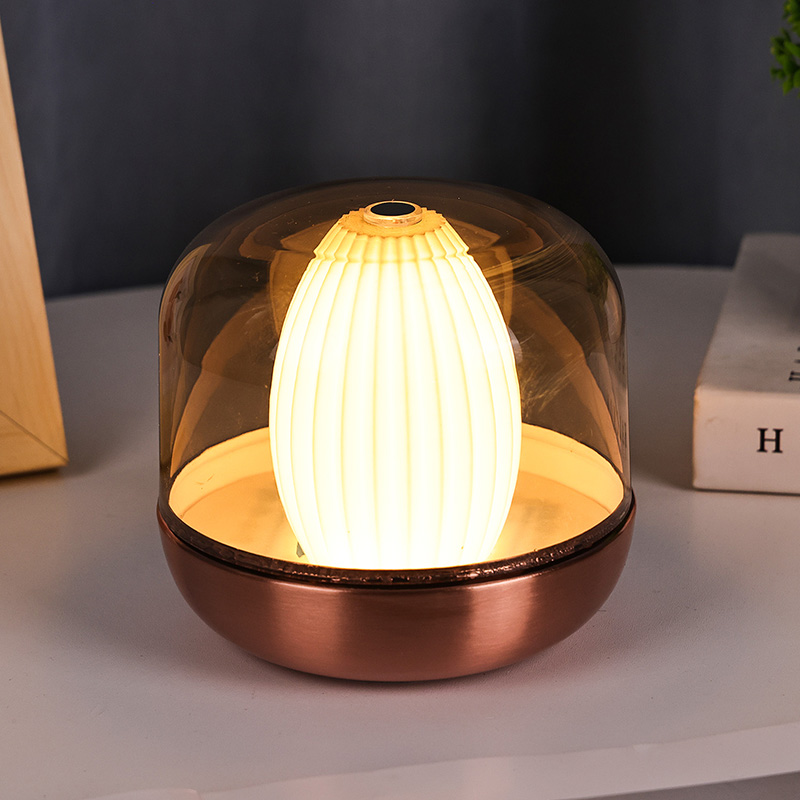 De ontwerpinspiratie van dit nachtlampje met warme gloed komt voort uit de combinatie van natuur en architectonische esthetiek. Met zijn ronde en mollige vorm lijkt het op een zorgvuldig gesneden amberkleurige edelsteen. Geplaatst op een bureau of tafel, wordt het moeiteloos een visueel middelpunt. De buitenste laag is voorzien van een hoogtransparante hoes die niet alleen de interne lichtbron beschermt, maar ook unieke licht- en schaduwlagen creëert door breking, waardoor een dromerig visueel effect ontstaat.