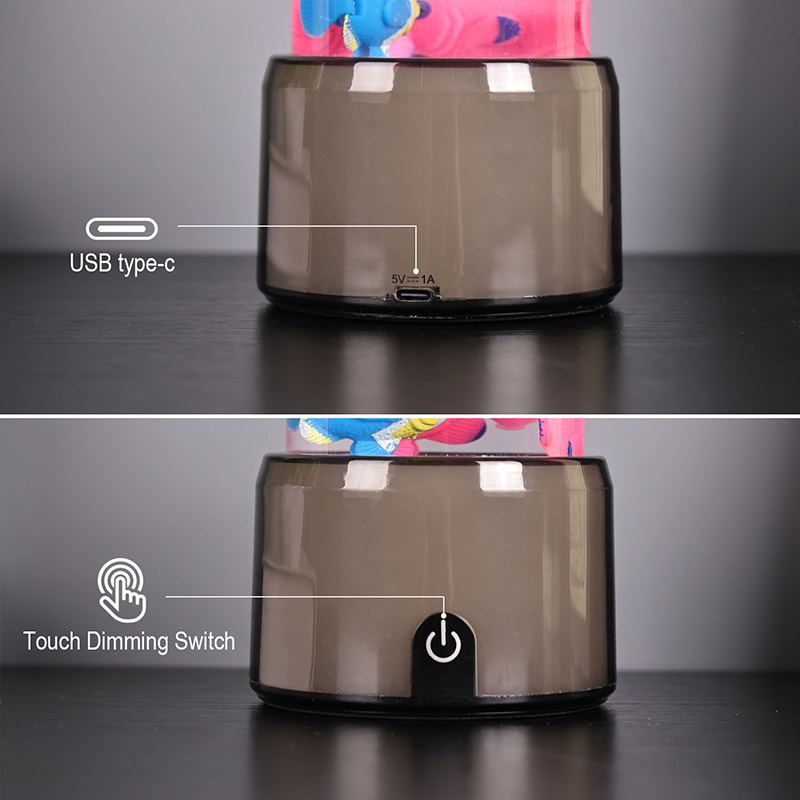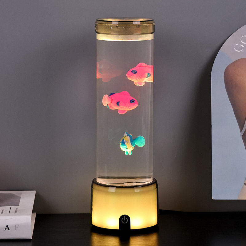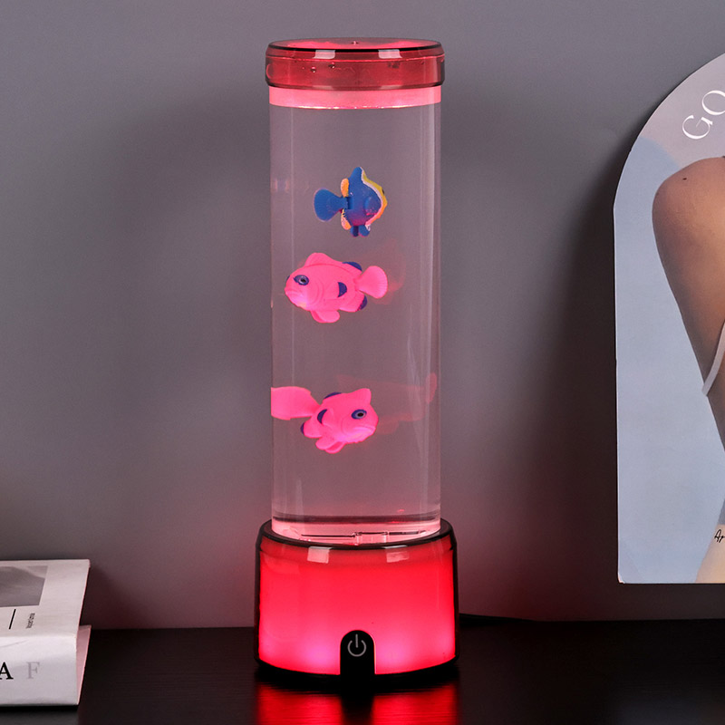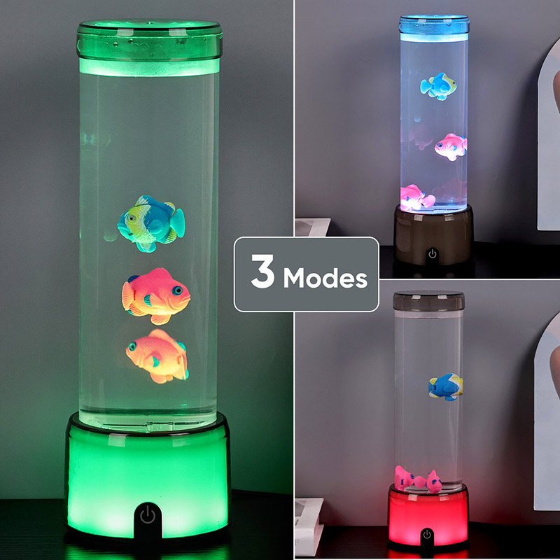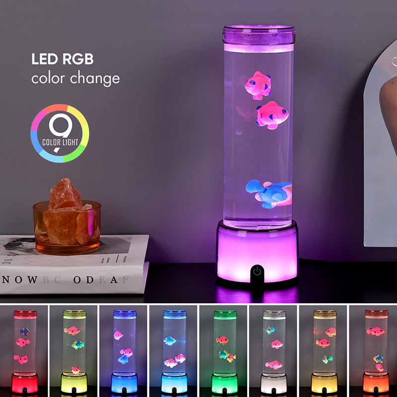 De voet van de vislamp is uitgerust met een RGB-kleurveranderende transparante basis, die meerdere kleuren licht kan uitstralen, waardoor het hele lamplichaam een kleurrijk effect geeft. Kleur na het inschakelen van de schakelaar