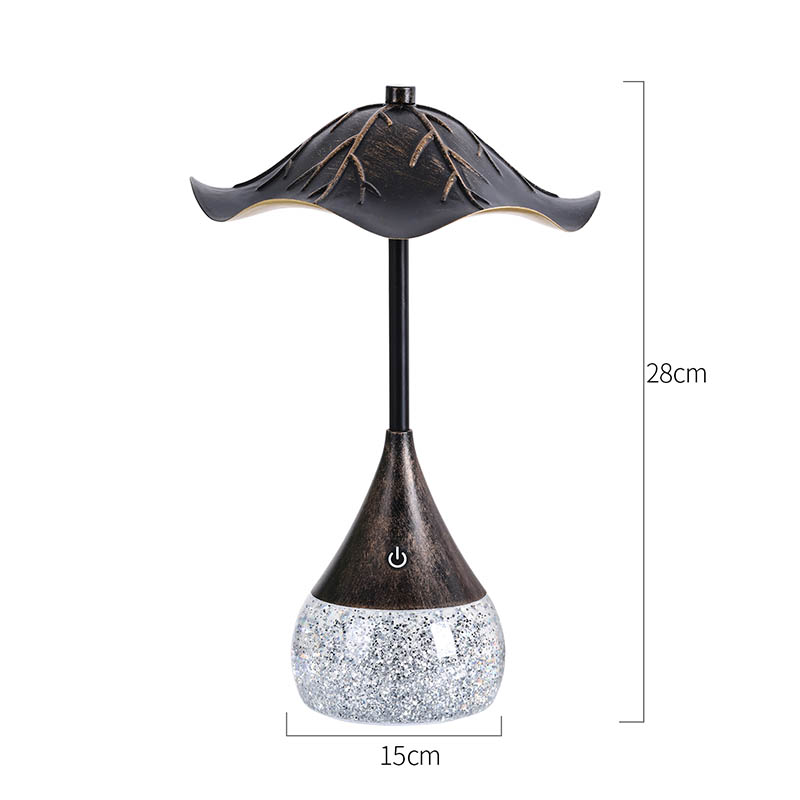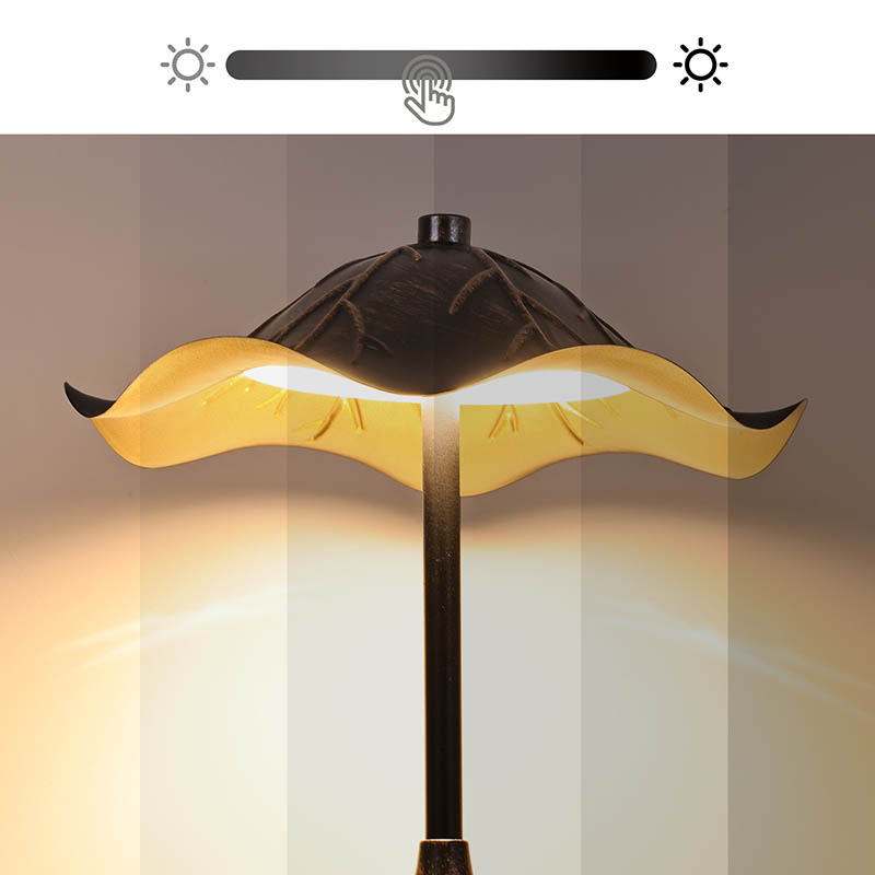 Het middelpunt van deze lamp is de opvallende overkoepelende top, die doet denken aan een delicate champignon dop versierd met ingewikkelde gouden bladpatronen. Dit ontwerp voegt niet alleen een vleugje door de natuur geïnspireerde schoonheid toe aan uw omgeving, maar dient ook als een functionele diffusiedekking voor de lichtbron, waardoor een zachte, zelfs gloed ontstaat die aangenaam is voor de ogen.