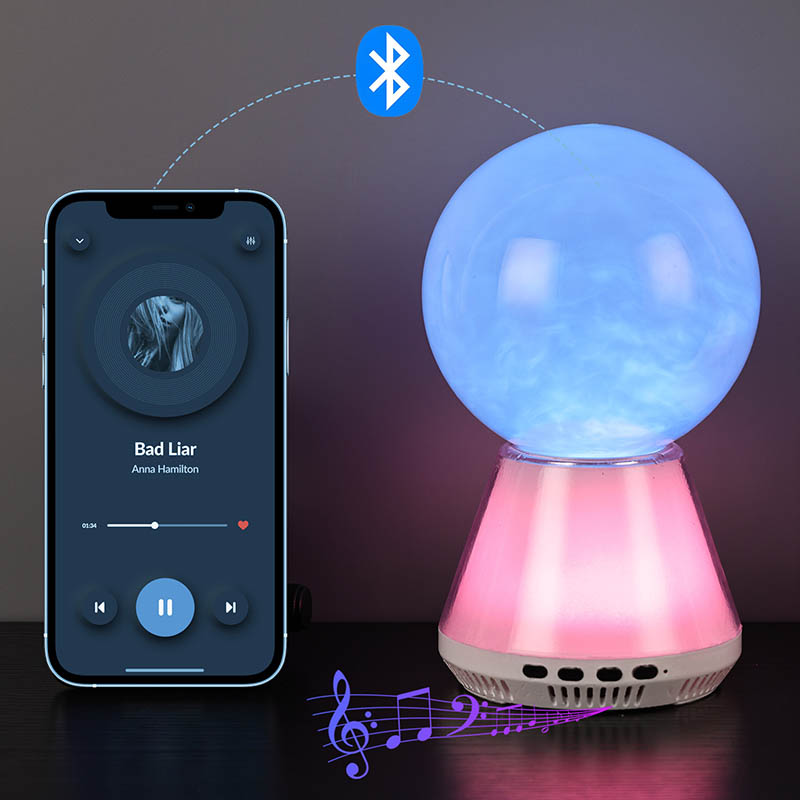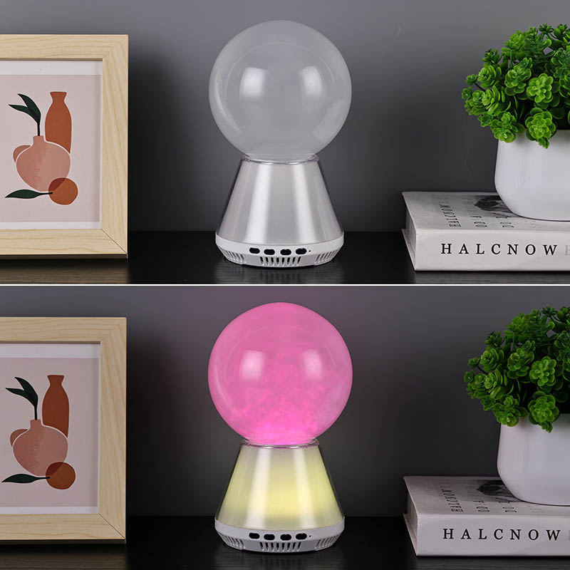 RGB LED-glitterlamp met Bluetooth-bediening die de vloeistofstroom in een glazen bol combineert tot een wolkachtige toestand, gesynchroniseerde kleurveranderingen tussen de basis en de vloeistof, en Bluetooth-verbinding om muziek af te spelen, is ontworpen om een dromerige wereld voor u te creëren. RGB LED-glitterlamp met Bluetooth-bediening is niet alleen een praktisch nachtlampje, maar ook een magisch kunstwerk.