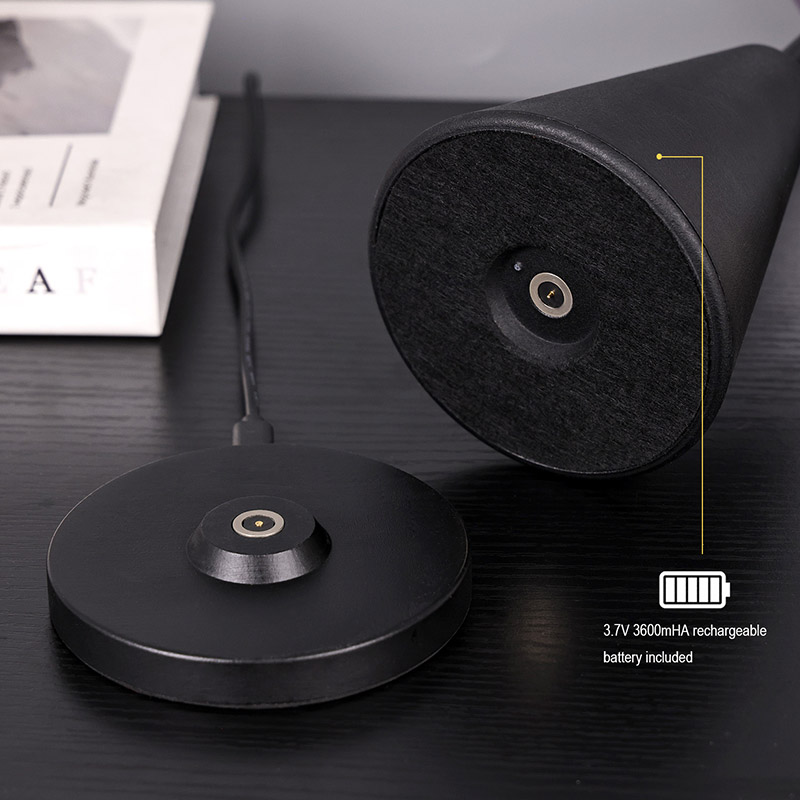 De kern van het ontwerp van de lamp is het compacte en draagbare karakter. Met een hoogte van 25,5 cm en een diameter van 13,5 cm past hij perfect op elk bureau, tafel of plank zonder al te veel ruimte in beslag te nemen. De lichtgewicht en stevige voet van de lamp zorgt voor stabiliteit en voorkomt kantelen, waardoor hij veilig in elke kamer kan worden gebruikt. Of je nu een klein appartement of een ruime woning inricht, deze lamp is de perfecte keuze.