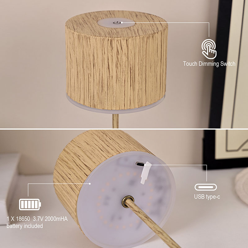 Watertransferprinten met houtnerfVoor dit doel is een houten led-leeslamp met batterij en 3 snelheden verstelbare, oplaadbare houten bureaulamp met warme kleuren ontworpen. Het combineert perfect de natuurlijke houtstructuur met zachte, warme kleurenverlichting, waardoor u een uniek visueel genot en een comfortabele verlichtingservaring krijgt.